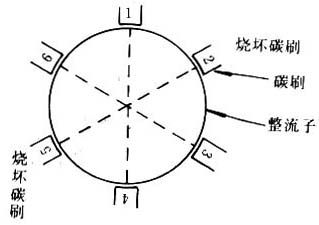 圖1 整流子對(duì)稱碳刷燒壞示意圖