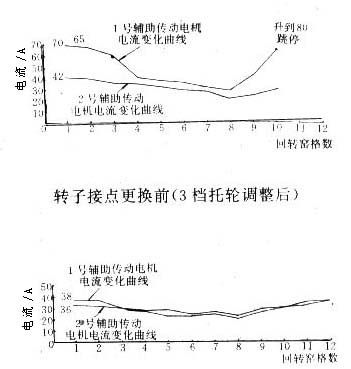 (4)主傳動(dòng)2號(hào)主電機(jī),已多次發(fā)生過碳刷整排燒壞事故。主要原因是整流子磨損嚴(yán)重,換向困難,造成幾何中心線偏移,電流分布不均衡,電機(jī)帶病運(yùn)行。