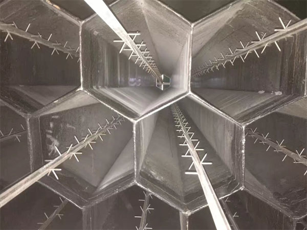 (10)布置靈活多樣:江蘇中礦擁有立式濕電除塵器和臥式濕電除塵器的成功工程經(jīng)驗(yàn),根據(jù)煙氣特性、排放要求、現(xiàn)場(chǎng)場(chǎng)地情況,靈活按立式和臥式來(lái)布置,也可將濕式電除塵器布置在脫硫塔的上部(頂置式),以節(jié)省場(chǎng)地。